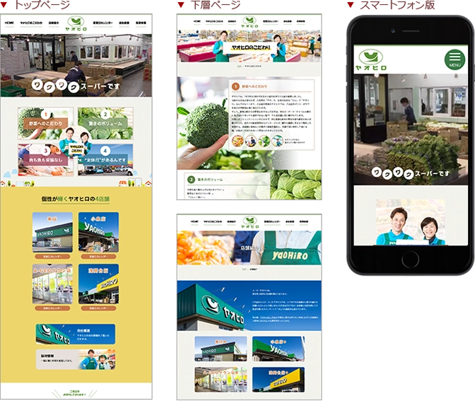 また、人気のヤオトコフェアの開催日がすぐに分かるようトップページの見やすい位置に表示。定休日があるスーパーのため、営業日カレンダーや店舗情報にもすぐアクセスできるようにするなど、お客様目線で使いやすい導線設計を行いました。